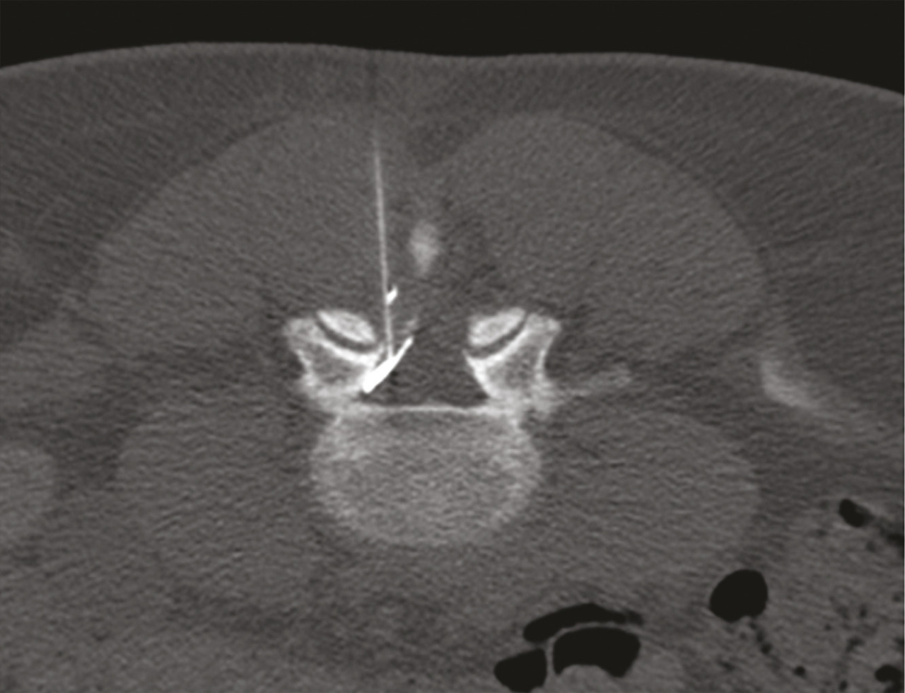 Des accidents neurologiques graves (paraplégies, quadriplégies, décès) ont été rapportés à partir des années 2000, après des infiltrations cervicales et lombaires de corticoïdes particulaires (en suspension), principalement par voie foraminale et, moins fréquemment, épidurale.14-18 Ces accidents sont heureusement très rares, mais difficilement acceptables dans le cadre de la prise en charge d’une affection bénigne. Trois principaux facteurs sont en cause dans ces accidents : l’utilisation d’un corticoïde particulaire, la voie d’abord foraminale et un antécédent de chirurgie vertébrale à l’étage injecté. Une variante anatomique ou une artère radiculomédullaire, provenant du rachis lombaire inférieur ou sacré et vascularisant le cône terminal, est probablement aussi en cause à l’étage lombaire.