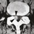 Un kyste synovial développé aux dépens d’une articulation interapophysaire postérieure peut provenir de l’arrière et comprimer l’émergence d’une racine nerveuse (