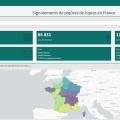 La page d’accueil (fig. 1) du site s’ouvre sur des compteurs : nombre de signalements de piqûre chez les humains et chez les animaux, nombre de courriers contenant au moins une tique reçue au laboratoire, ventilation par régions. Les données montrent une forte variabilité selon les zones géographiques : les régions les plus touchées sont le Grand-Est, la Bourgogne-Franche-Comté et l’Auvergne-Rhône-Alpes, alors que la Provence-Alpes-Côte d’Azur est la plus épargnée. Quatre onglets permettent d’accéder en temps réel aux données récoltées : « environnement au moment de la piqûre », « activité au moment de la piqûre », « âge lors de la piqûre », « date de piqûre ».