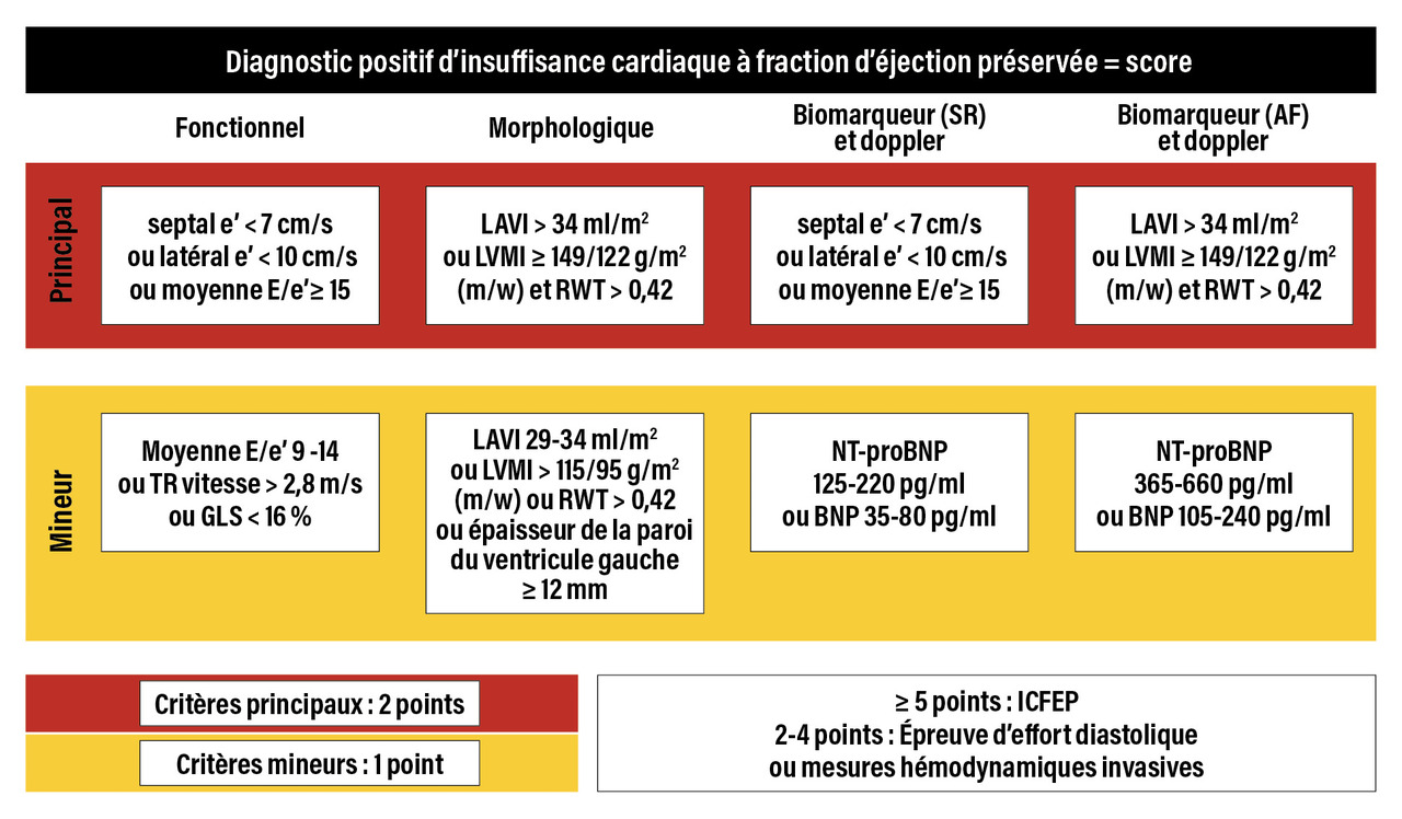 – une fraction d’éjection préservée (FEVG ≥ 50 %) ;