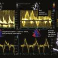 – une absence d’augmentation de S’ et e’ tel qu’enregistré à l’anneau mitral (en Doppler tissulaire pulsé) avec, de fait, une augmentation rapide du rapport E/e’ ; une fuite mitrale est aussi possible (