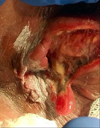 Une patiente de 86 ans se plaint de douleurs anales et de saignements. Elle est hospitalisée en gériatrie depuis deux semaines pour bilan de chutes et de perte d’autonomie. L’alitement ayant aggravé sa constipation chronique, des lavements évacuateurs lui ont été administrés. L’examen clinique révèle une ulcération de la marge anale (fig. 1).