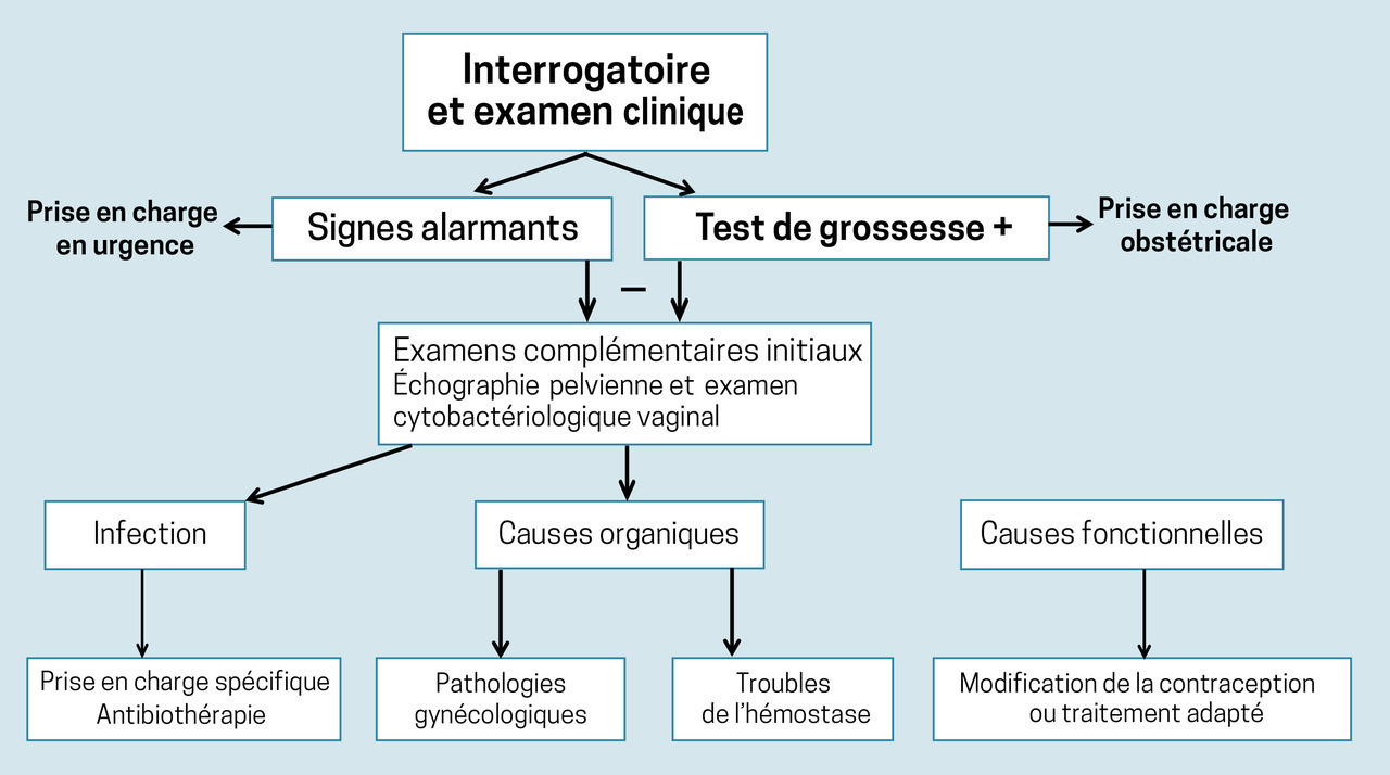 Les causes organiques ou générales sont dans la plupart des cas traitées par le spécialiste. Pour la prise en charge des saignements fonctionnels, voir l’encadré ci-dessous.