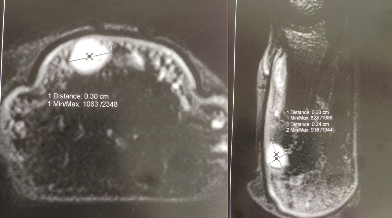 Parfois, il existe une localisation métachrone d’une nouvelle lésion, pouvant être confondue avec une récidive. Une nouvelle localisation homodigitale, différente de la résection incomplète, peut être définie par l’association d’une première analyse anatomopathologique garantissant une excision complète, d’un intervalle d’au moins six mois sans symptômes et d’un emplacement différent sur les imageries par résonance magnétique (IRM) comparatives.