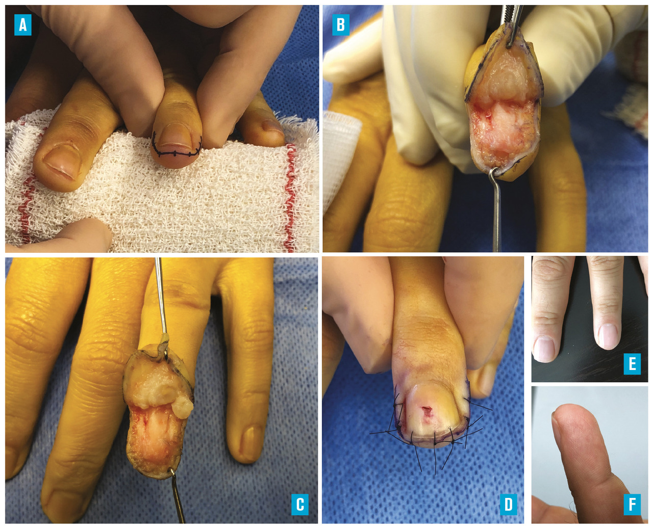 La voie d’abord peut être transunguéale ; cette technique présente un risque de dystrophies de la matrice nécessitant une réparation méticuleuse du lit unguéal pour limiter les séquelles fonctionnelles et esthétiques.15, 22-24