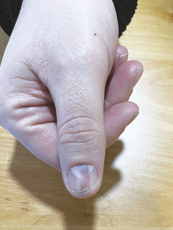 Dans 47 % des cas, elles peuvent également être cliniquement reconnaissables par la présence d’une zone sous-unguéale de couleur bleuâtre à rouge et/ou d’une dystrophie unguéale (
