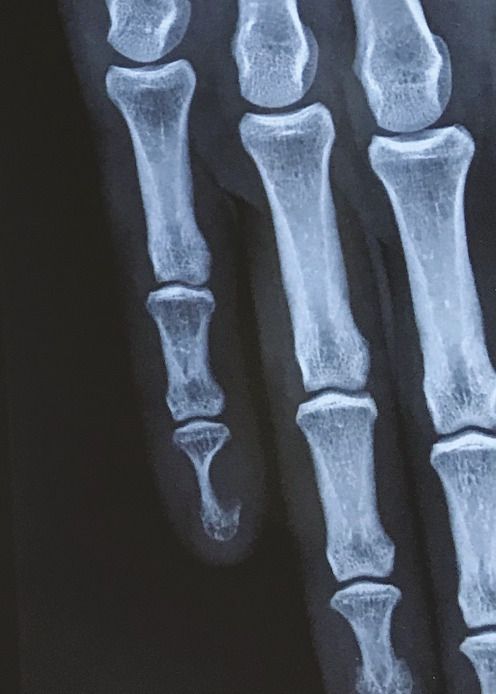 Des érosions osseuses peuvent être visibles sur les radiographies simples : un festonnage ou une empreinte de la phalange distale est mis en évidence chez 36 % des patients,15 jusqu’à de volumineuses lacunes osseuses (