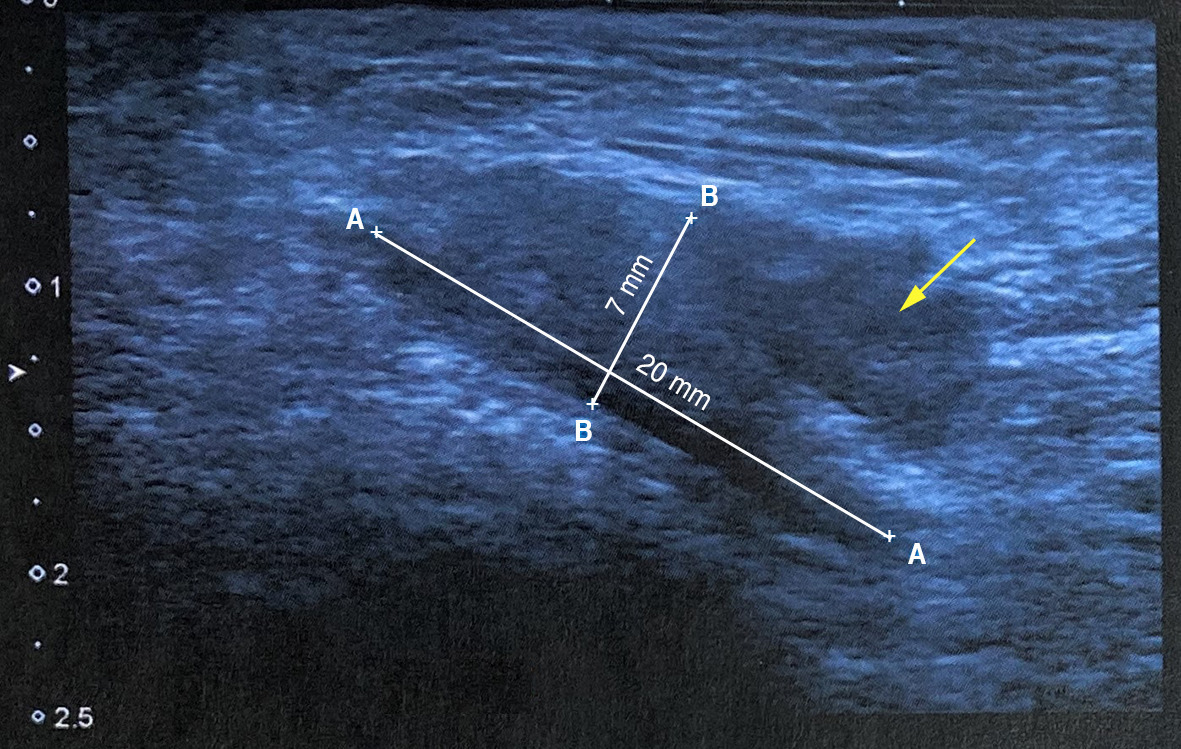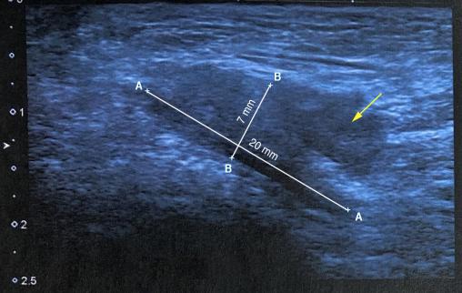 Le diagnostic est essentiellement clinique mais des examens d’imagerie peuvent être réalisés : échographie (figure)ou IRM, en cas de manifestations peu évocatrices.