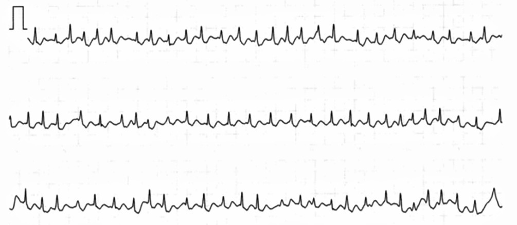 Lors d’un nouvel épisode de palpitations, son époux lui fait porter sa montre connectée. Grâce à une fonction spécifique, cette dernière enregistre un tracé, qui révèle une FA de fréquence rapide (
