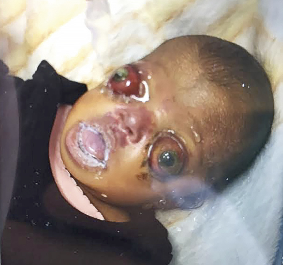 Un enfant de 7 jours (2 kg) est amené en consultation (Mayotte) pour une exophtalmie impressionnante évoquant d’emblée un syndrome de Crouzon.