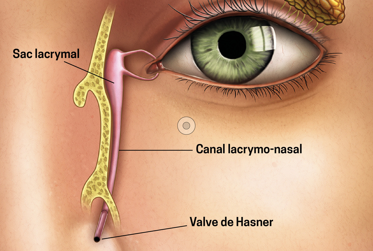 Le traitement chirurgical définitif, la dacryocystorhinostomie, est pratiqué après un délai de stabilisation.1, 2 Il consiste à relier le sac lacrymal aux fosses nasales après avoir réalisé un orifice osseux au niveau de la branche montante du maxillaire supérieur.