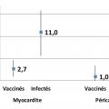 Des cas de myocardites et de péricardites ont été signalés après vaccination contre la Covid-19 avec les vaccins Pfizer ou Moderna. Une étude récente, menée en Israël sur une importante base de données de santé, compare ces risques chez des témoins, des patients infectés par le Sars-CoV-2, et des personnes vaccinées avec le vaccin Pfizer. Comparé à celui des témoins, le risque de myocardite est augmenté de 2,7 pour 100 000 vaccinés mais de 11 pour 100 000 personnes infectées par le Sars-CoV-2 (fig. 2 ).18 Ces effets indésirables doivent être signalés, afin d’assurer une prise en charge rapide en cas de douleur thoracique, de dyspnée ou de palpitations.19