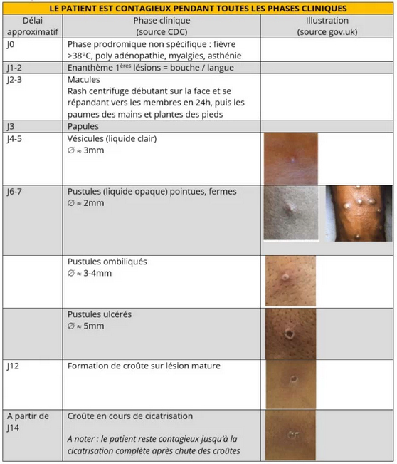 Toutefois, selon le Pr Yazdan Yazdanpanah, infectiologue (conférence de presse de la DGS du 30 août), les tableaux cliniques sont très hétérogènes, certains patients ayant une lésion génitale unique (11 % des cas), d’autres une éruption très douloureuse, voire une forme plus grave en cas d’immunodépression. Des cas asymptomatiques (environ 6 %) sont aussi décrits mais leur rôle dans la transmission n’est pas connu.