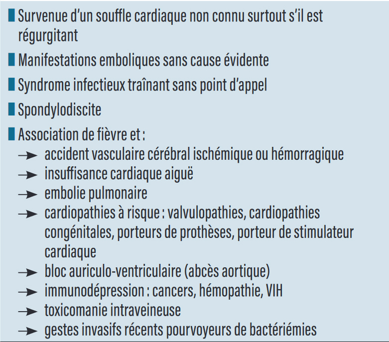 Devant quels tableaux cliniques penser systématiquement à une endocardite ?
