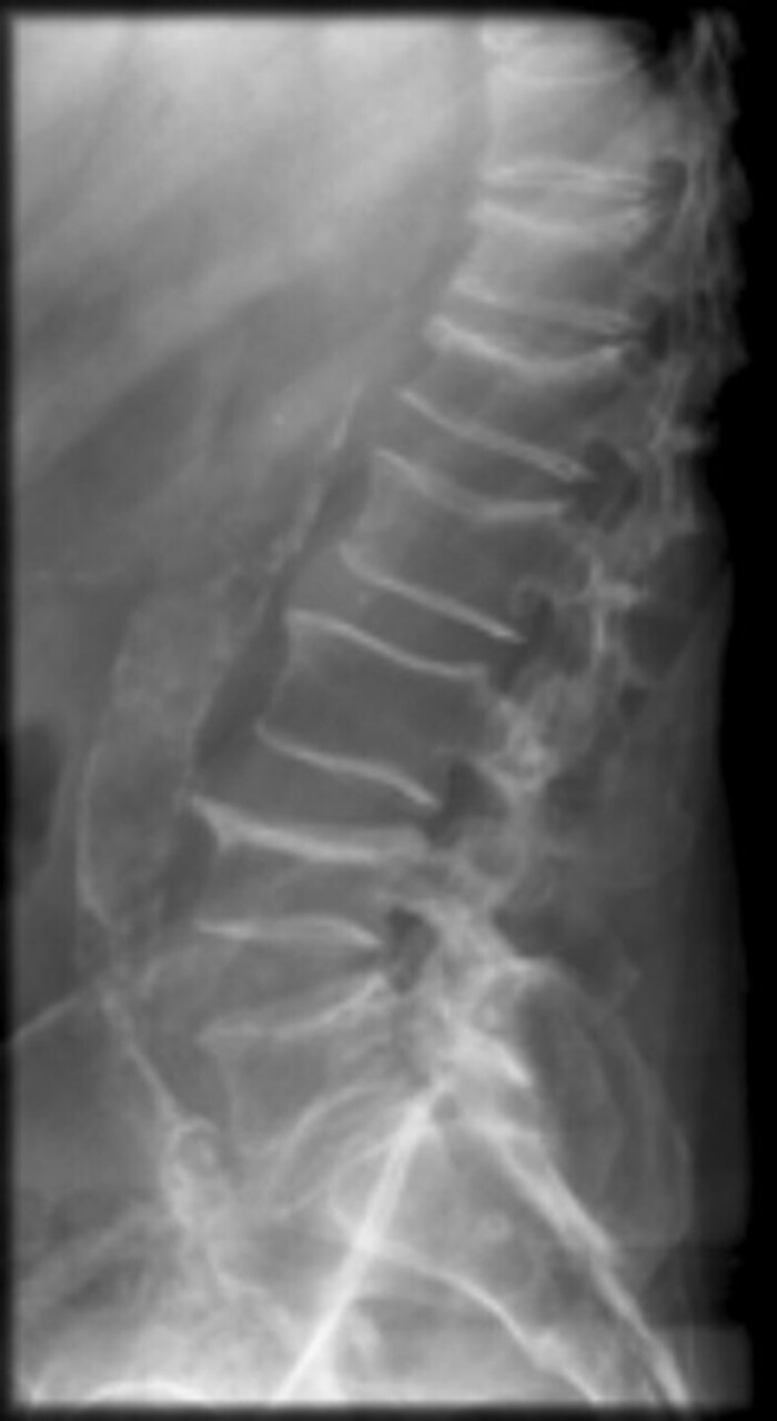 Vous réalisez en première intention une radiographie du rachis lombaire que voici.