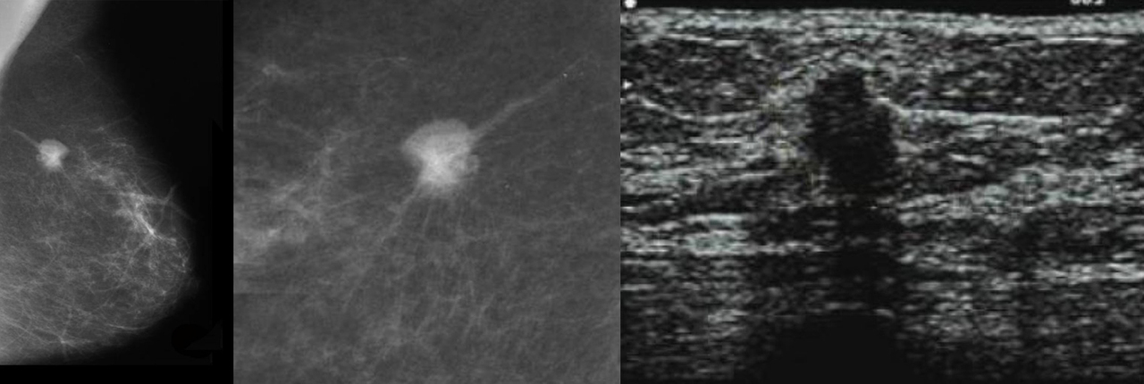 Votre examen clinique est finalement le suivant : vous palpez un nodule d’environ 25 mm du sein droit. La peau est normale, le mamelon est normal sans écoulement, la manœuvre d’adduction contrariée de Tillaux est négative. Vous ne palpez pas d’adénopathie axillaire.
