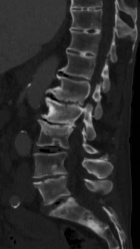 Vous suspectez une complication rachidienne avec fracture de L2 et recul du mur postérieur responsable d’un syndrome de la queue de cheval.