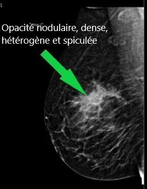 La mammographie et l’échographie retrouvent un nodule spiculé de 41 mm du quadrant supéro-interne du sein gauche.