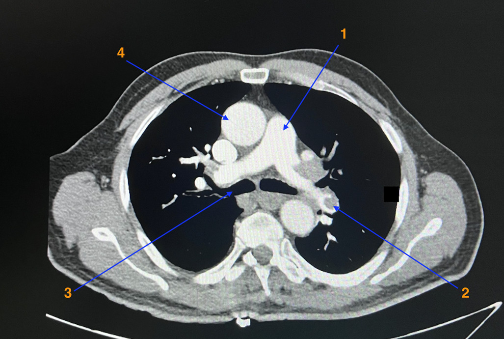 – score de Glasgow = 15 ; apyrétique ; hémodynamique stable (fréquence cardiaque [FC] = 75/min, tension artérielle [TA] = 136/75 mmHg aux deux bras, saturation en oxygène = 94 % en air ambiant) ;