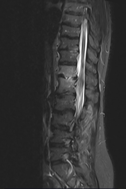 R11. Il est fortement recommandé de réaliser, en IRM, des séquences sagittales en contraste T1, T2 (si possible avec suppression de graisse) et d’associer une injection de gadolinium pour la détection d’abcès et d’une épidurite, et de réaliser une séquence axiale (A1).