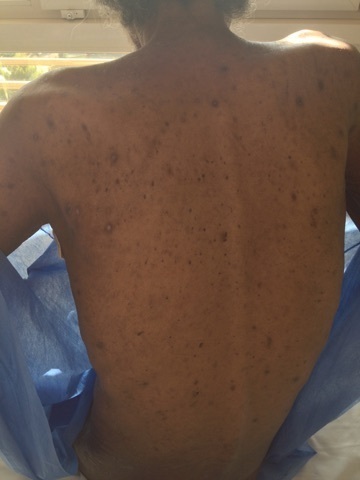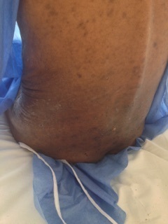L’examen clinique initial met en évidence les lésions ci-dessous, prédominant au niveau du tronc, du dos et des épaules