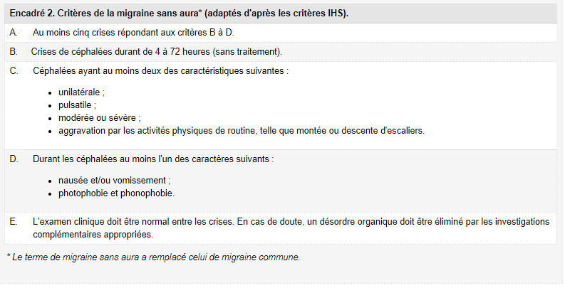 Les critères de la migraine sans aura selon International Headache Society (IHS)