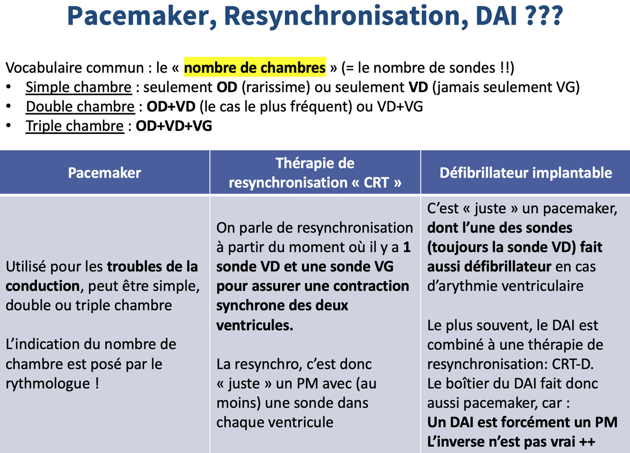 Non, on peut implanter un pacemaker triple qui ne fait pas défibrillateur (par contre, tous les défibrillateurs font pacemaker)
