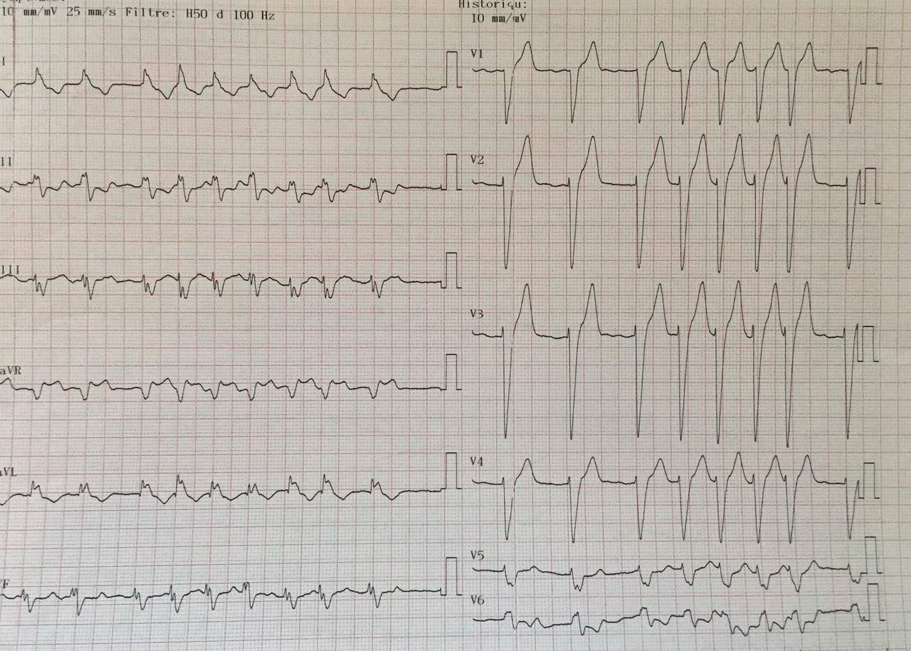 L’électrocardiogramme (ECG) réalisé à l’entrée est le suivant :