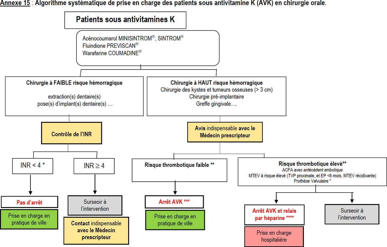 Les gestes dentaires peuvent intégralement être réalisés sous aspirine seule. Il n’y a donc aucune indication à un quelconque relais hasardeux ou quelconque modification thérapeutique pour l’extraction dentaire (figure 19). Figure 19 (source : Société française de chirurgie orale)