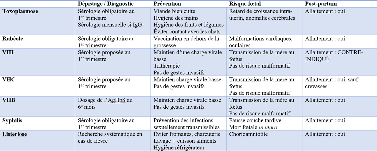 Infections materno-fœtales et grossesse : mini-mise au point