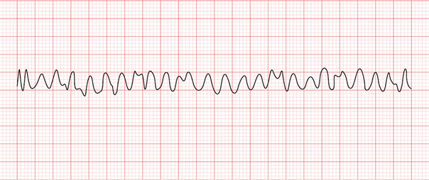 Devant cette fibrillation ventriculaire, 2 chocs électriques externes sont administrés, l’adrénaline n’a pas été injectée. L’analyse du rythme cardiaque montre la persistance d’une fibrillation ventriculaire.