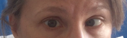 Paralysie oculomotrice avec atteinte de l’abduction vers l’extérieur de l’œil droit, évocatrice d’une atteinte de la 6e paire crânienne droite. Figure 1bis (source : S. Demortière)