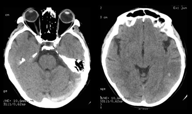 Son mari a prévenu l’équipe médicale à 13h30 car sa femme a présenté brutalement la symptomatologie suivante : « cela a commencé par des difficultés à s’exprimer pendant quelques secondes : elle n’arrivait plus à dire certains mots, puis elle est devenue toute raide avec les yeux révulsés et semblait avoir des difficultés à respirer, elle ne répondait plus aux questions. Puis sont apparus des tremblements très importants de tout le corps pendant environ une minute ». Actuellement, la patiente est somnolente mais réveillable et ses propos ne sont pas très compréhensibles. Le reste de l’examen serait normal.