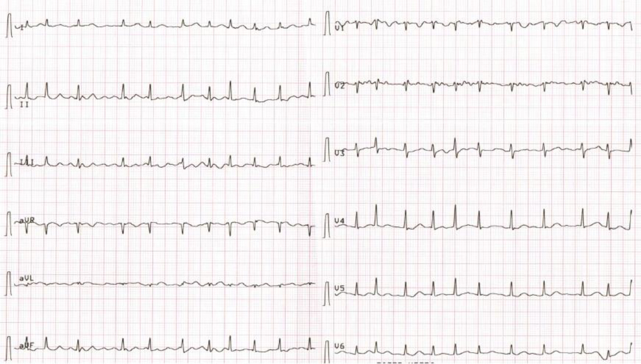 Les paramètres vitaux sont les suivants : fréquence cardiaque (FC) : 118/min ; pression artérielle (PA) : 140/92 mmHg ; température (T°) : 37,2°C ; saturation en oxygène (SpO2) : 98 % en air ambiant.
