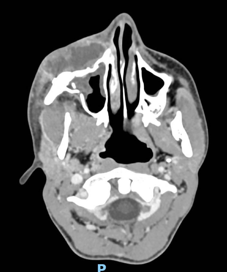 Le patient étant stable hémodynamiquement, il est indispensable de rechercher une paralysie faciale périphérique ou un traumatisme du globe, car ils mettent en jeu le pronostic fonctionnel du patient.