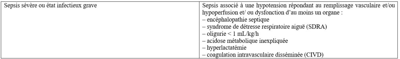 potassium = 7 mmol/L ; natrémie = 140 mmol/L ; créatininémie = 110 µmol/L ; protéine C réactive = 150 g/L ; hémoglobine = 11 g/dL ; globules blancs = 12 éléments/mm³ ; polynucléaires neutrophiles à 9,5 éléments/mm³.