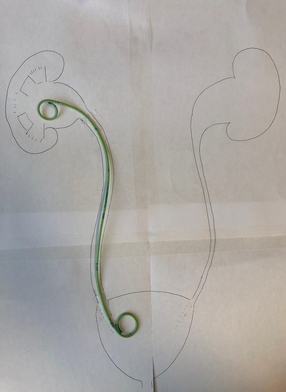 La cystectomie est réalisée, la cause de l’obstruction est traitée on peut donc retirée la sonde de nephrostomie en s’assurant par la suite de la stabilité de la fonction rénale.