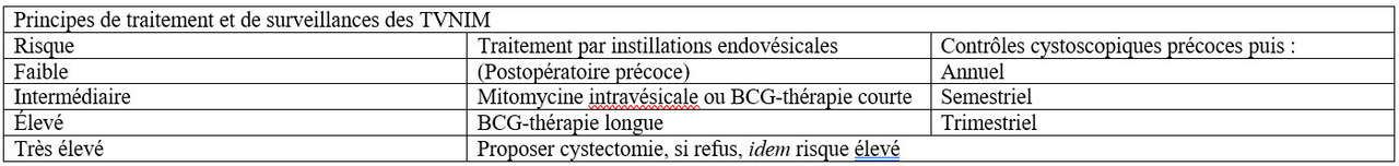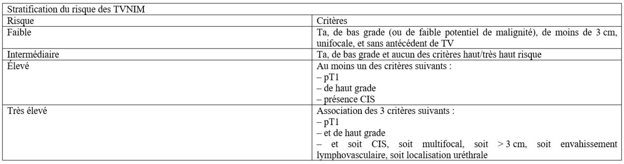 Source : « Prise en charge des TVIM, chapitre Tumeur de la vessie ». Collège d’urologie.