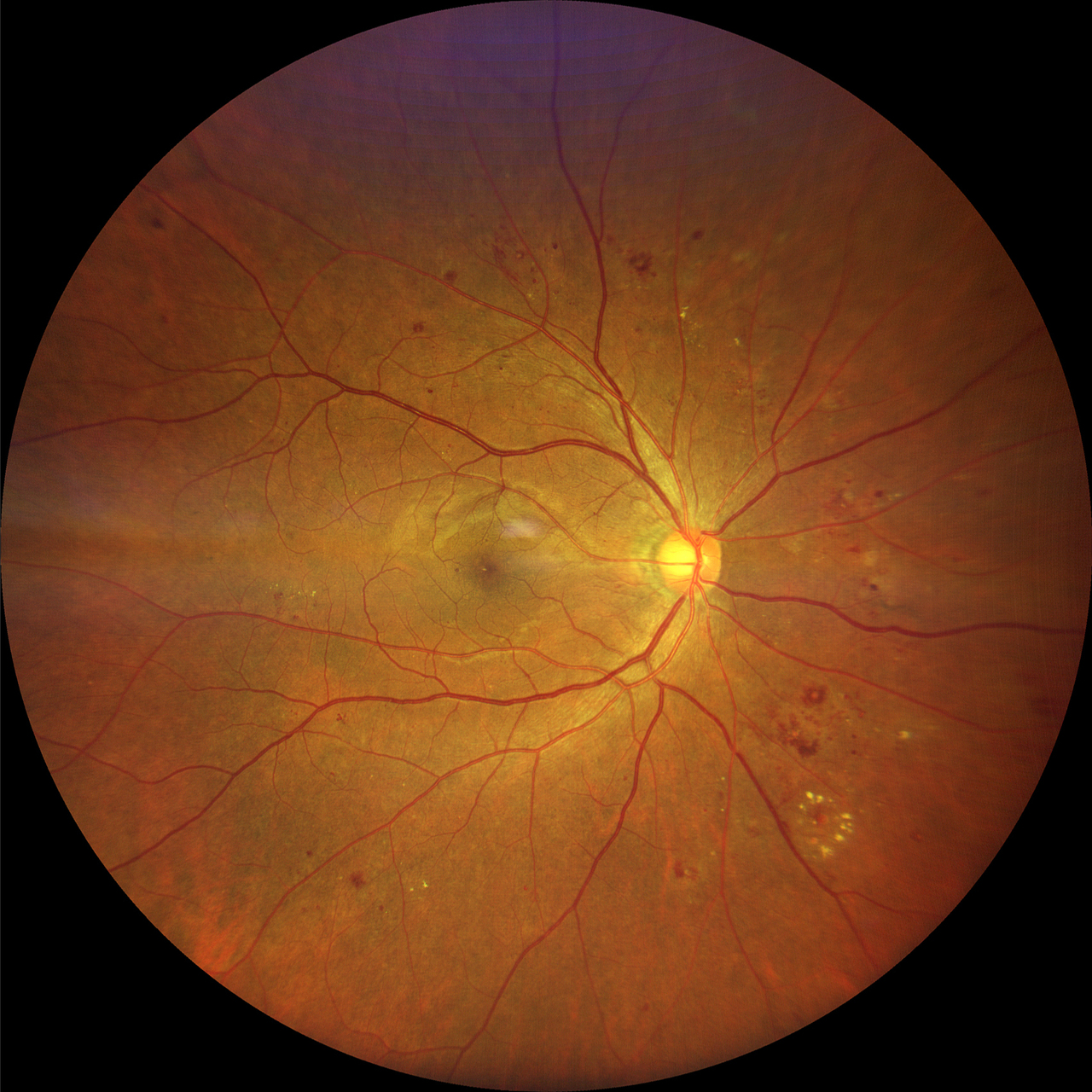 Un homme de 30 ans vient en consultation. Il se plaint d’une gêne au niveau de l’œil droit ainsi que de la paupière inférieure droite. Il est suivi pour un diabète de type 1 depuis l’âge de 11 ans bien équilibré, suivi par son médecin traitant une fois par an.