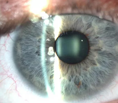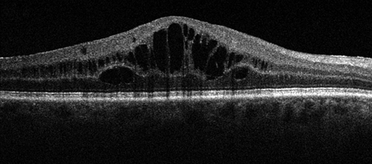 Vous recevez à votre cabinet de ville d’ophtalmologie une patiente âgée de 55 ans. Elle consulte pour une baisse d’acuité visuelle depuis six mois. Elle a pour antécédents un diabète de type 1 sous insuline depuis l’âge de 25 ans. Votre examen révèle :