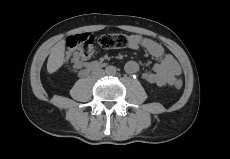TDM-TAP avec et sans injection de produit de contraste. La TDM-TAP sans injection est l’examen de référence dans l’urgence, pour le diagnostic des colites néphrétiques (CN). Elle permet de voir les calculs radio-transparents à l’abdomen sans préparation (ASP).