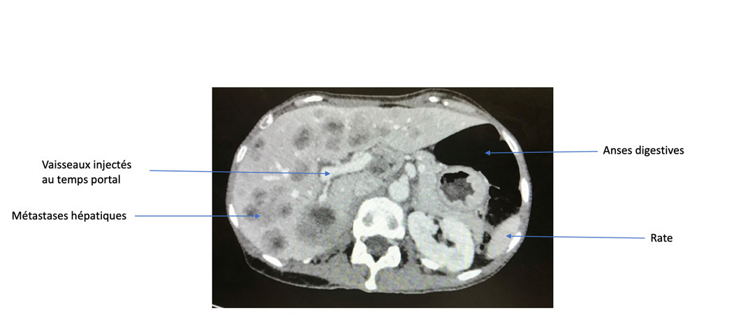 Vous recevez Mme G., 64 ans, en consultation. Elle est adressée par son médecin traitant pour une anémie. Hypertendue, elle est sous lercanidipine. Sa mère est décédée d’un cancer du côlon à 62 ans. Elle vous dit avoir perdu 5 kg en un mois. Elle vous montre son bilan biologique : hémoglobine (Hg) = 9,8 g/dL ; volume globulaire moyen (VGM) = 70 fL ; hématocrite 44 % ; leucocytes = 6 g/L dont 4 g/L de polynucléaires neutrophiles (PNN) ; plaquettes = 400 g/L ; ferritinémie = 3 µg/L (N : 15-150) ; Na = 137 mmol/L ; K+ 4,1 mmol/L ; créatininémie = 75 µmol/L ; protides 55 g/L ; urée = 9 mmol/L ; protéine C réactive(CRP) = 3 mg/L.