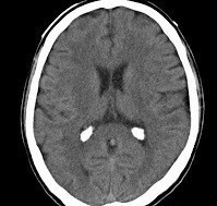 L’imagerie cérébrale réalisée en urgence correspond à une tomodensitométrie cérébrale sans injection de produit de contraste iodée en coupe axiale. L’hyperdensité intra-ventriculaire correspond à une banale calcification des plexus choroïdes classique pour l’âge. L’imagerie ne retrouve donc aucune anomalie pouvant expliquer la symptomatologie présentée par le patient.