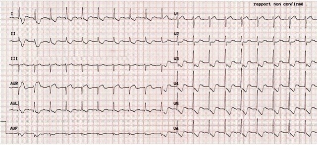 L’ECG réalisé en urgence ne montre qu’une tachycardie sinusale.