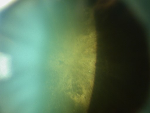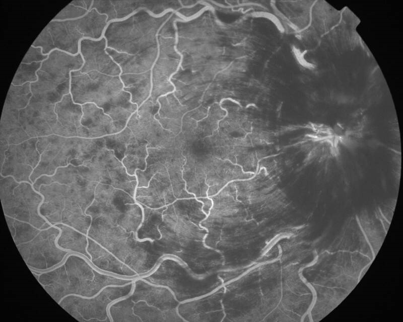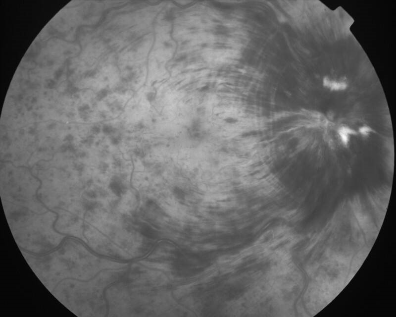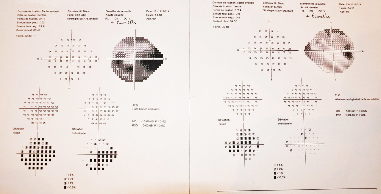 Son œil droit est blanc et indolore. On retrouve une acuité visuelle chiffrée à moins de 0,5/10e à droite contre 8/10e à gauche. Il n’y a pas de notion de traumatisme.