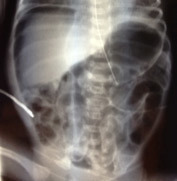 – clinique : vomissements bilieux et distension abdominale dans les premières heures de vie ;