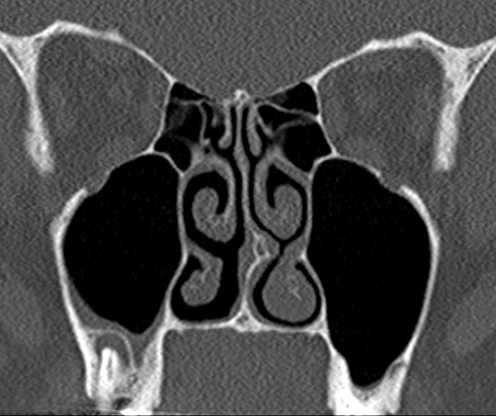 On voit bien le granulome apical, et le sinus maxillaire qui est bien aéré immédiatement au-dessus. Ce n’est donc pas une sinusite aiguë