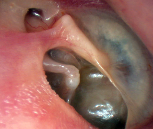 Myringite bulleuse : c’est ici une complication infectieuse avec la constitution d’une bulle intra-tympanique