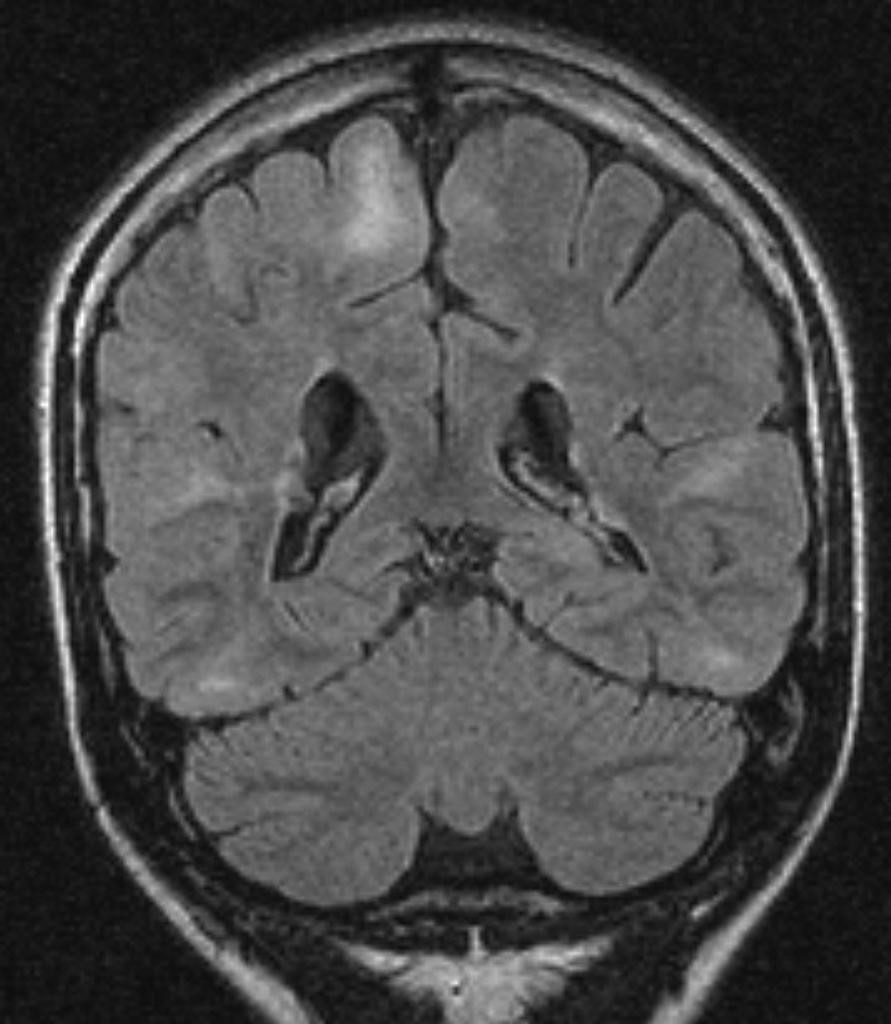 Voici une coupe de l’IRM cérébrale (coronale FLAIR) réalisée chez Simon :