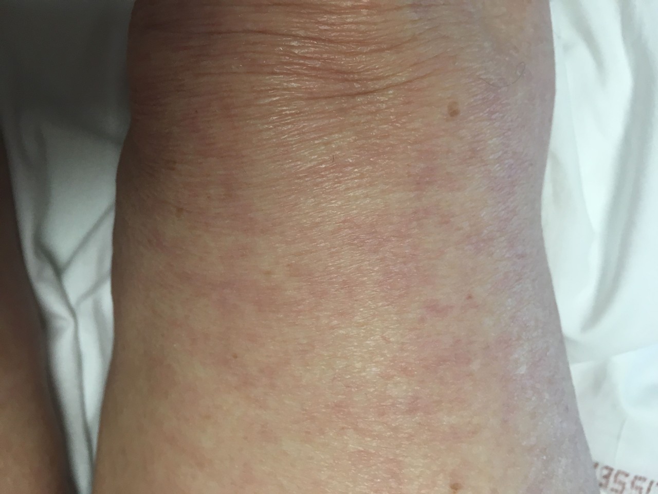 Elle a comme antécédents un diabète insulinoréquérant, une arythmie cardiaque par fibrillation auriculaire (ACFA) paroxystique traitée par amiodarone et fluindione, un reflux gastro-œsophagien traité par pantoprazole. Elle n’a pas d’allergie médicamenteuse connue.